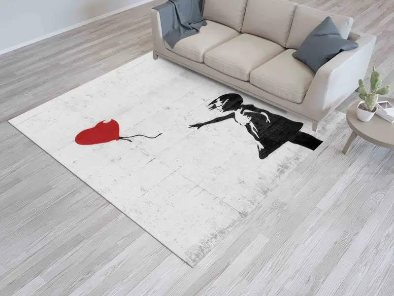 バンクシーの女の子とハートの落書きプリントラグ、モダンアートデザイン