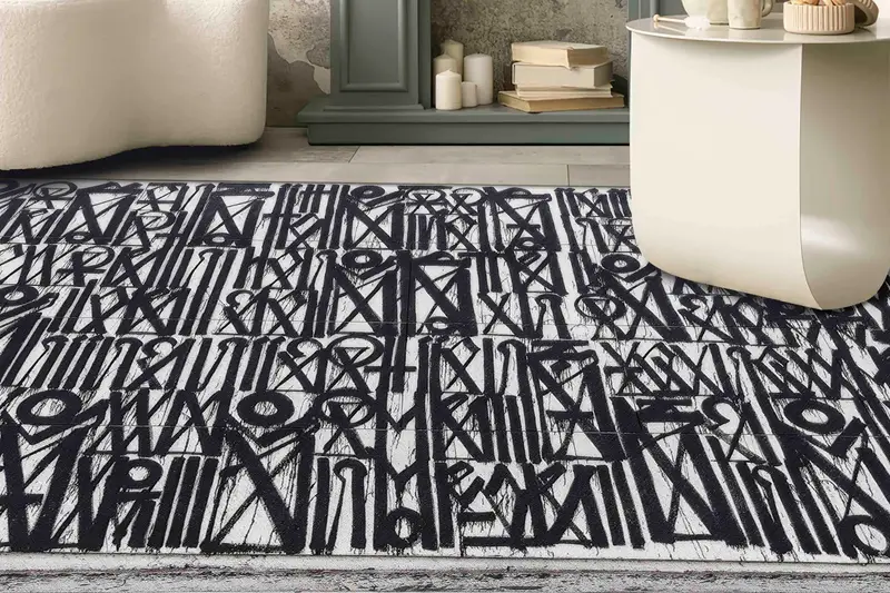グラフィティアート白黒プリントラグ、モダンな抽象デザイン