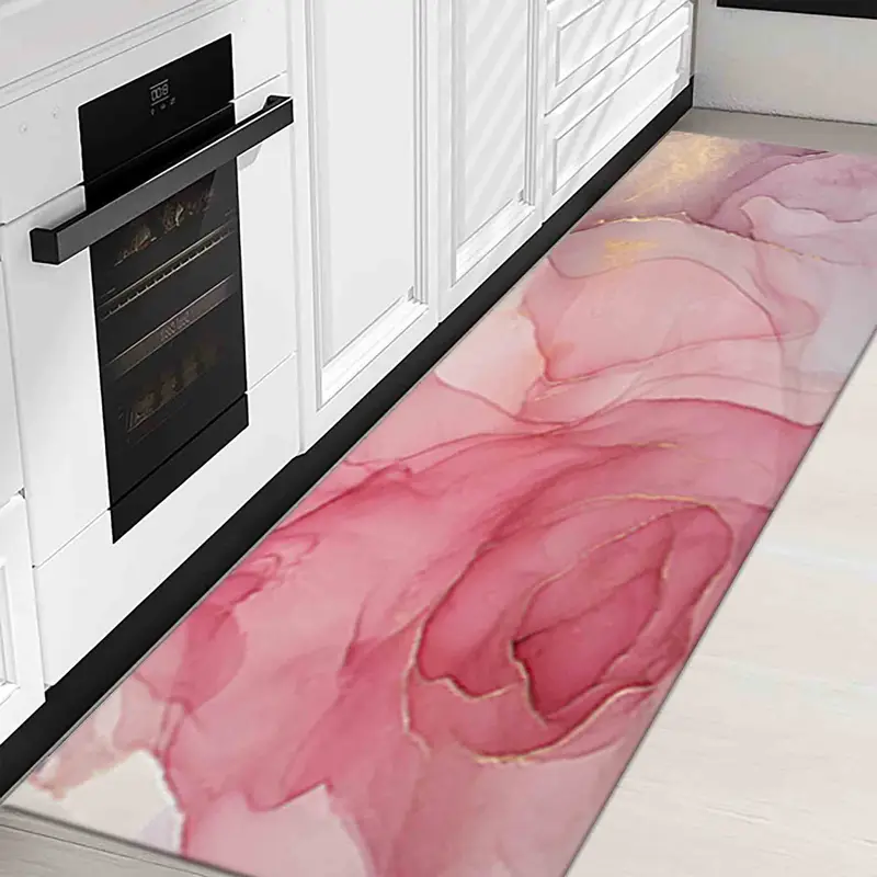 ピンクとゴールドの大理石プリント ラグ - 現代的な豪華なデザイン