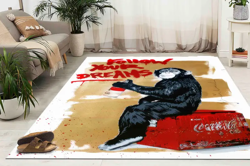Graffiti Dreams: バンクシー モンキー プリント ラグ - モダン アート ラグ