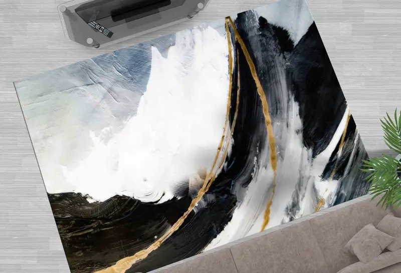 ブラックとゴールドの大理石プリントラグ - モダンで豪華なデザイン