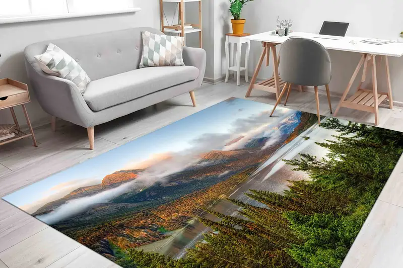 モンタナ氷河の森プリントラグ: 雁行島の風景