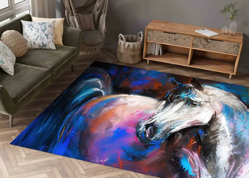 ホワイトホース抽象プリントラグ - モダンな馬愛好家へのギフト