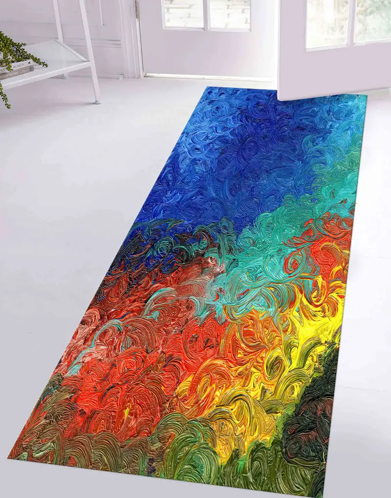カラフルな抽象プリントラグ: モダンで現代的なデザイン