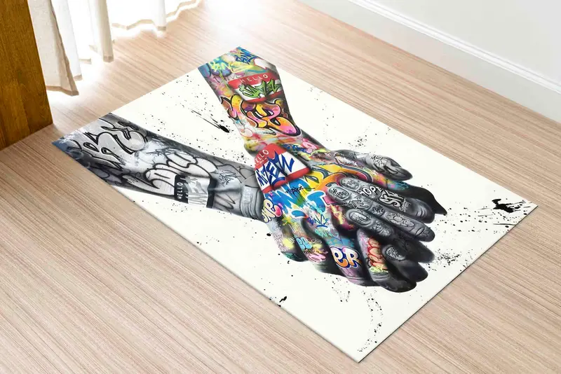 グラフィティハンズラバーズプリントラグ:カップルギフト、ストリートアートデザイン