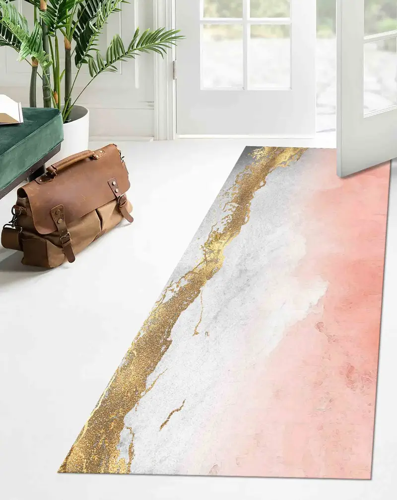 ピンクの大理石プリントラグ:豪華、ソフトトーン、現代的なデザイン