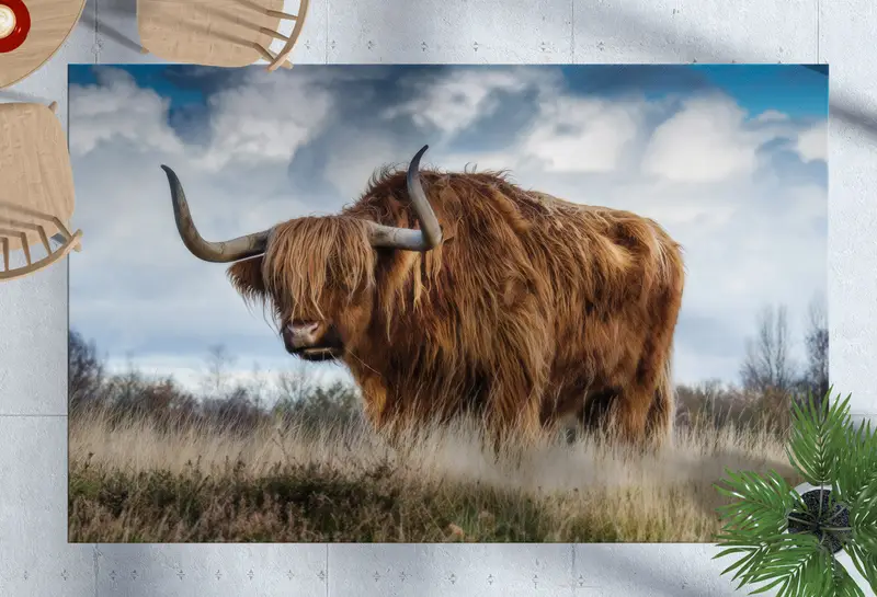 ワイルドブルデザインプリントラグ:ハイランドカウ、バイソン、自然テーマ