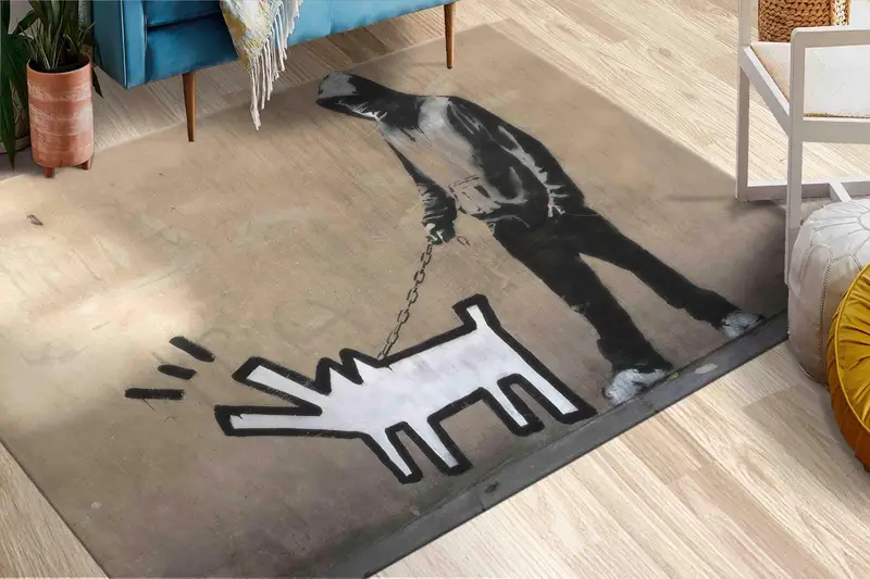 グラフィティバンクシー犬プリントラグ、アーバンアート、モダンホームデコレーション