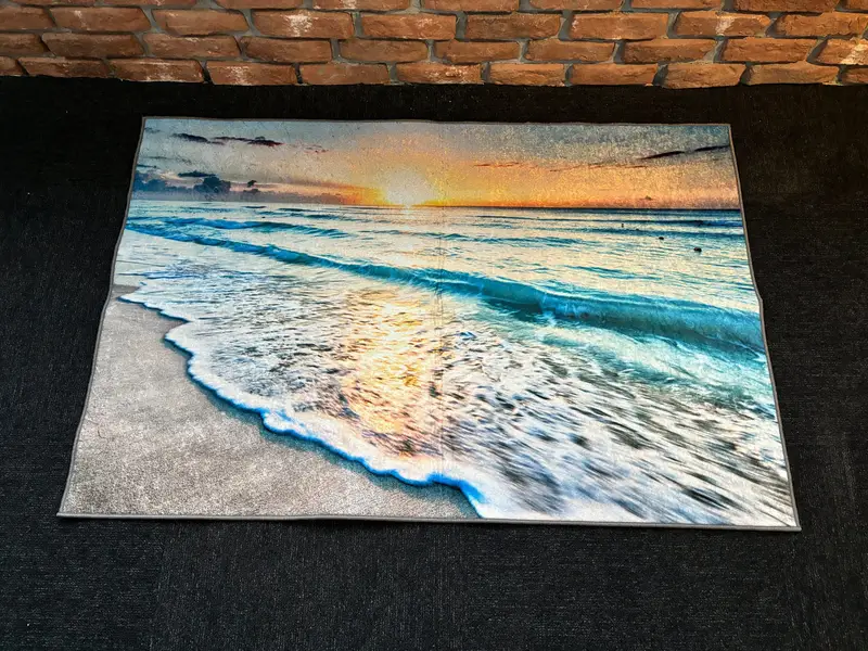 サンセットシースケーププリントラグ:現代の住宅のための海岸の魅力