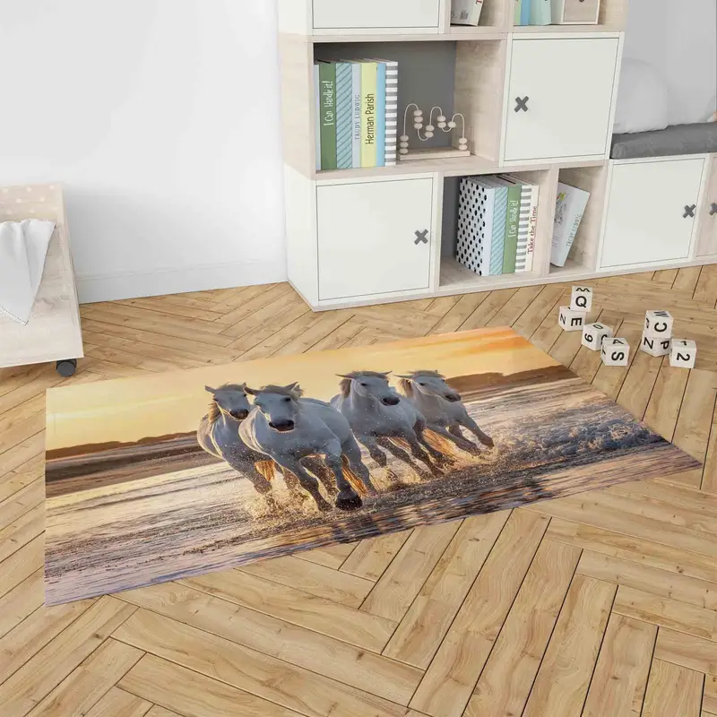 走る馬のアニマルプリントラグ - 馬愛好家の夢