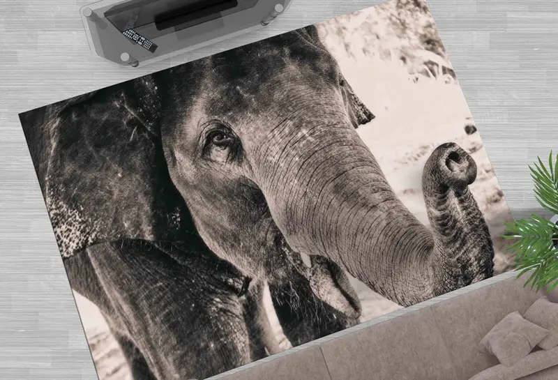 象の野生動物の写真プリントラグ - ユニークな動物デザイン