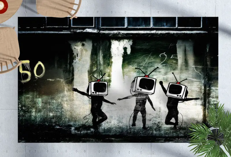 象徴的なバンクシー アート デザインをフィーチャーした落書きにインスピレーションを得たプリント ラグ