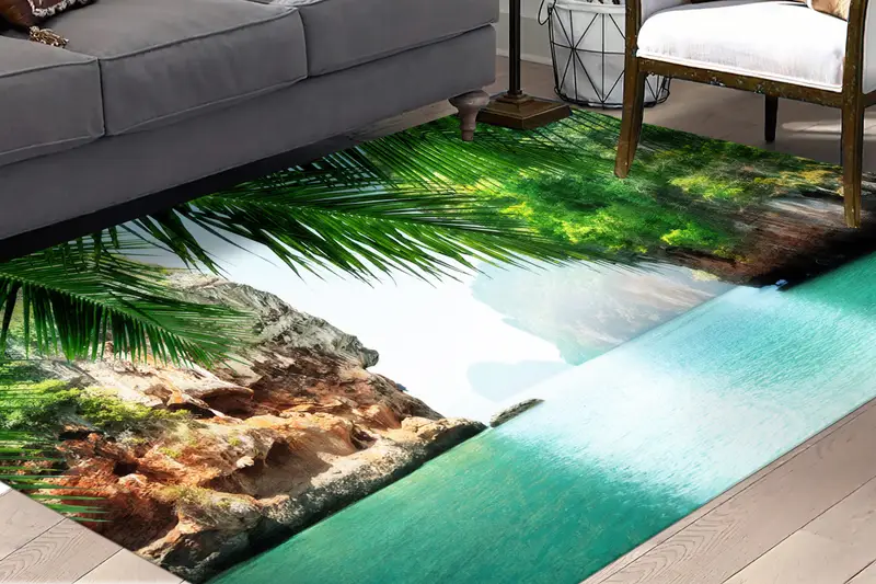 タイ湾海景プリントラグ: トロピカルグリーン風景装飾