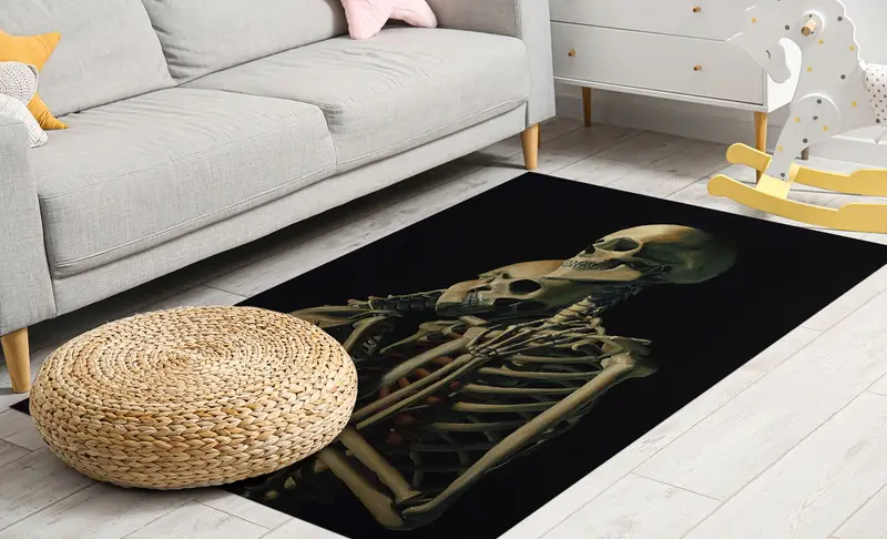 スカル スケルトン カップル モダン プリント ラグ、超現実的な芸術的な装飾