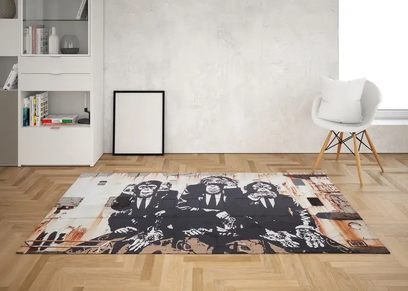 Three Wise Monkeys バンクシー プリント ラグ: ユニークな芸術的な装飾