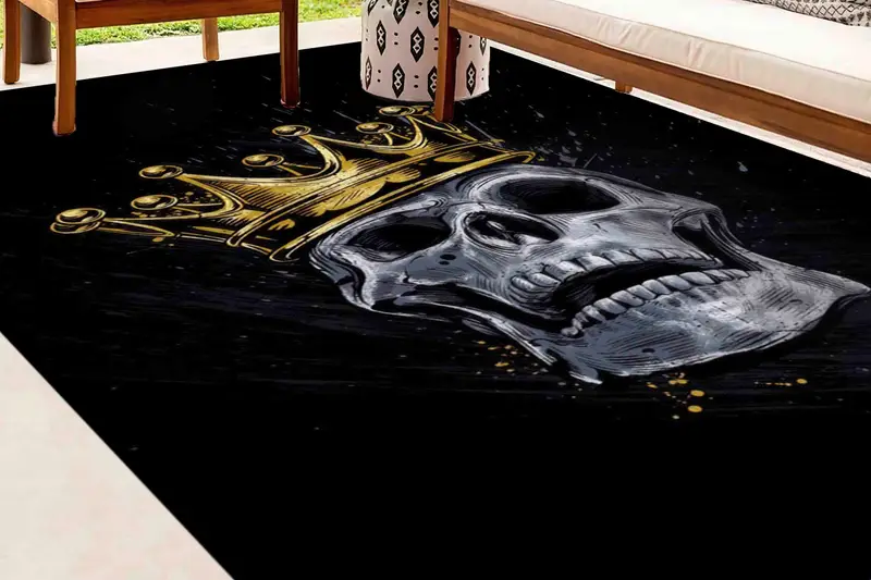 ブラックスカル&ゴールドスケルトンモダンプリントラグ、トレンディなデザイン