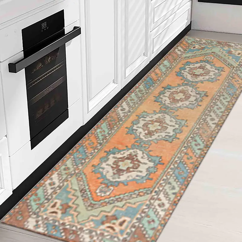 幾何学的なアステカ ヴィンテージ プリント ラグ、オレンジ ナバホ デザイン