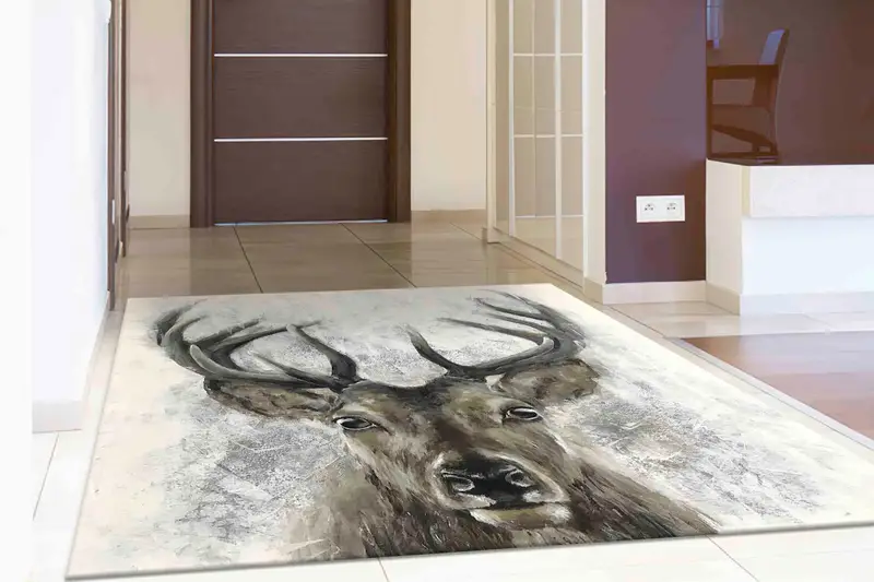 抽象的な鹿プリントのファームハウスラグ、モダンなロフト装飾、プリントラグ