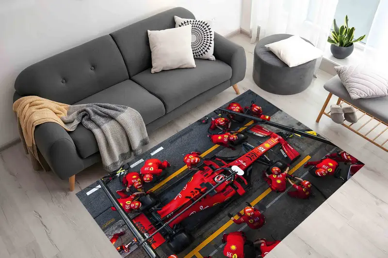 フェラーリ F1 にインスピレーションを得たプリント カー ラグ - シャルル・ルクレール デザイン