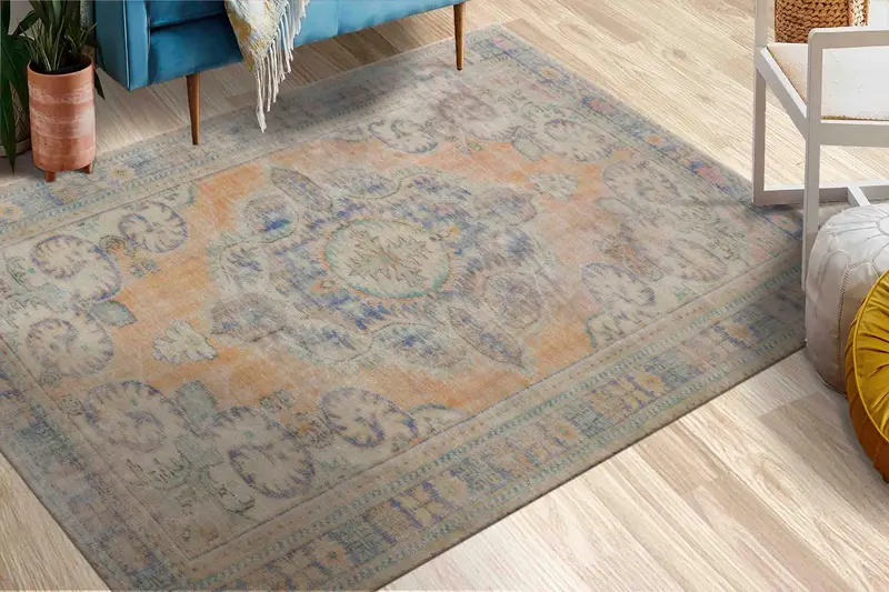 マスタードメダリオンプリントラグ:ヴィンテージアンティークスタイル