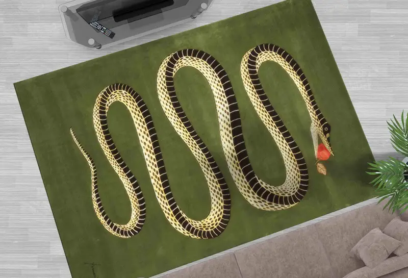グリーンスネークプリントラグ:モダンでトレンディな、動物にインスピレーションを得たデザイン