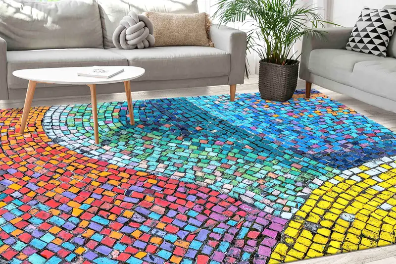 カラフルなウェルカムカスタムプリントラグ: あらゆるスペースに適したモダンなデザイン
