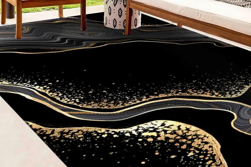 ゴールドマーブルプリントラグ:豪華な抽象的なホームアクセント