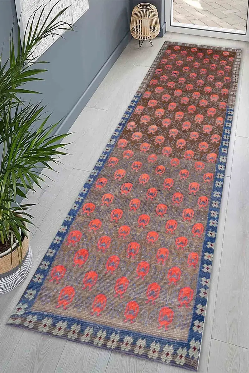 ザクロ ブルーム プリント ラグ、ヴィンテージ レッド & ブラウン アクセント