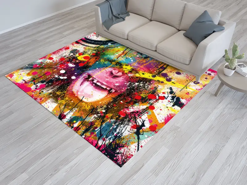 鮮やかな猿の落書きプリント ラグ - モダンな抽象的な装飾