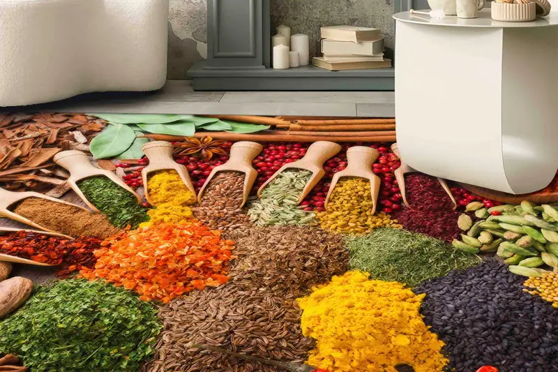 カラフルなスパイスプリントファームハウスキッチンモダンラグ、トレンディなデザイン