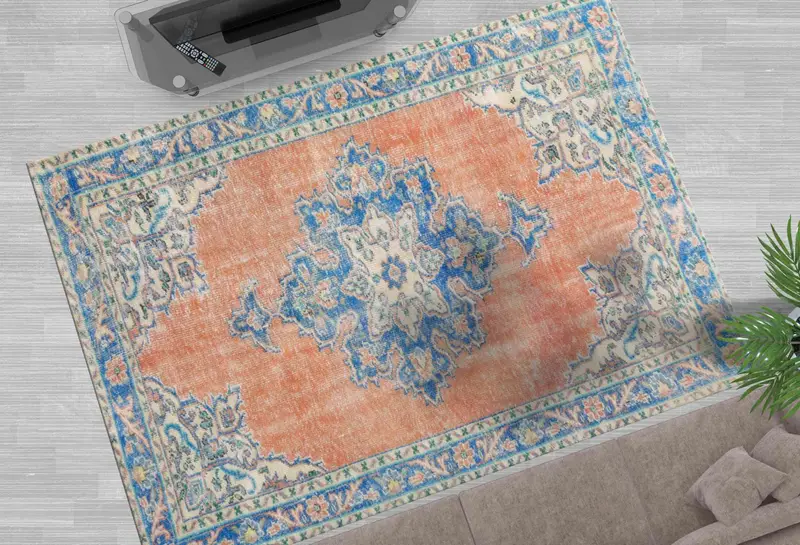 ブルーメダリオンヴィンテージスタイルプリントラグ、...