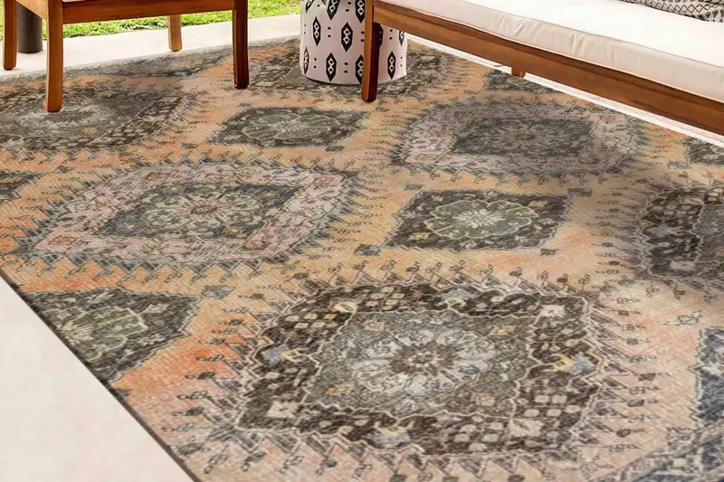 ブラウンメダリオンヴィンテージ花柄プリントラグ、ソフトな質感、耐久性のある生地
