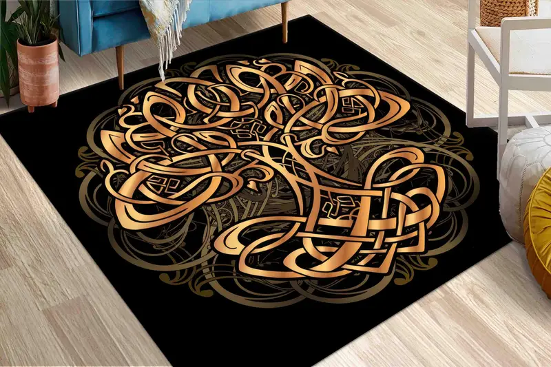 ゴールド ブラック サークル抽象的なモダンなプリント ラグ - トレンディなデザイン