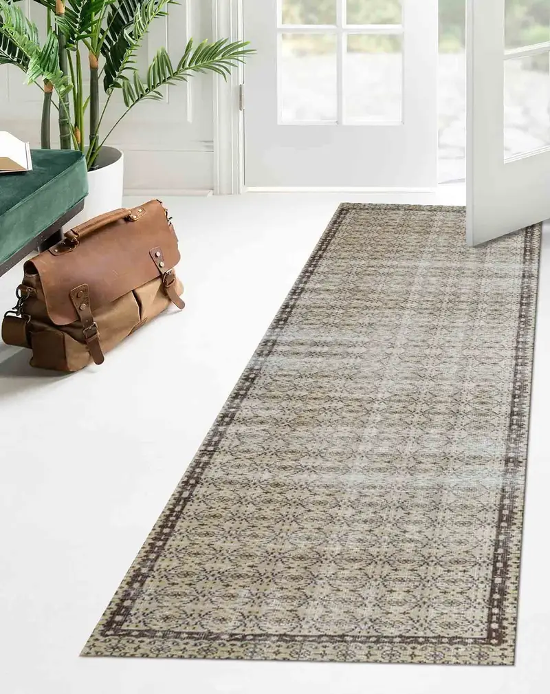 ブラウン & グリーンの花柄ヴィンテージ デザイン プリント ラグ、ボヘミアン スタイル