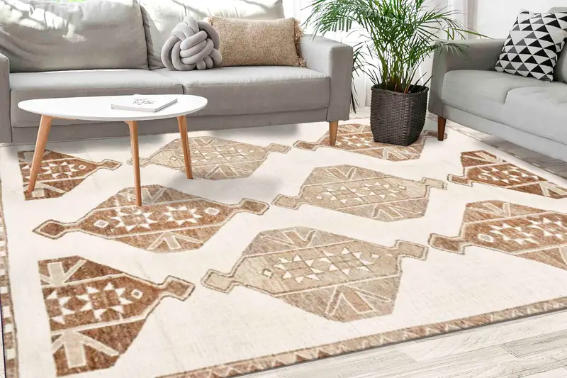 ブラウン & ベージュ ヴィンテージ ボヘミアン 幾何学模様 プリント ラグ、トレンディ シック