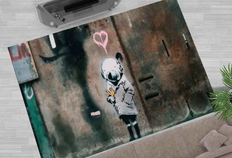バンクシー グラフィティ アート 宇宙飛行士 女の子 プリント ラグ - モダン ホームデコレーション