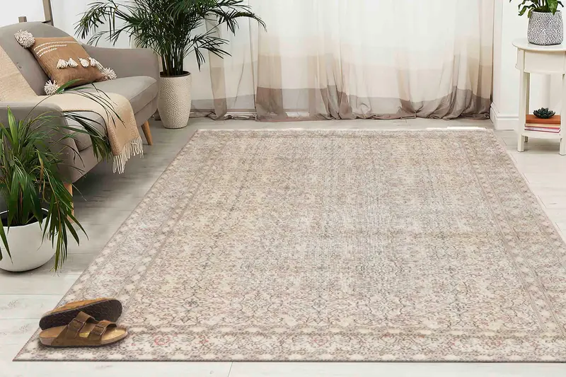 花柄ヴィンテージプリントラグ、ソフトトーンのオリエンタルデザイン