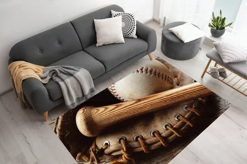 モダンな男の子の部屋の装飾に最適な野球をテーマにしたプリントラグ