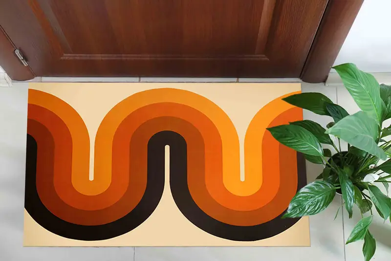 グルーヴィーな抽象プリントラグ: レトロな空間にモダンなボヘミアンアクセント
