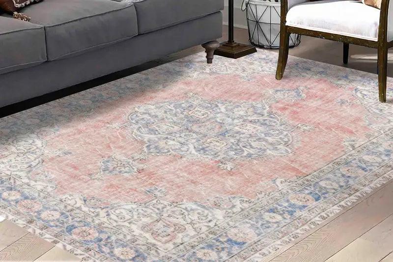 ヴィンテージフローラルメダリオンプリントラグ:アンティークデザイン、落ち着いたオシャクスタイル