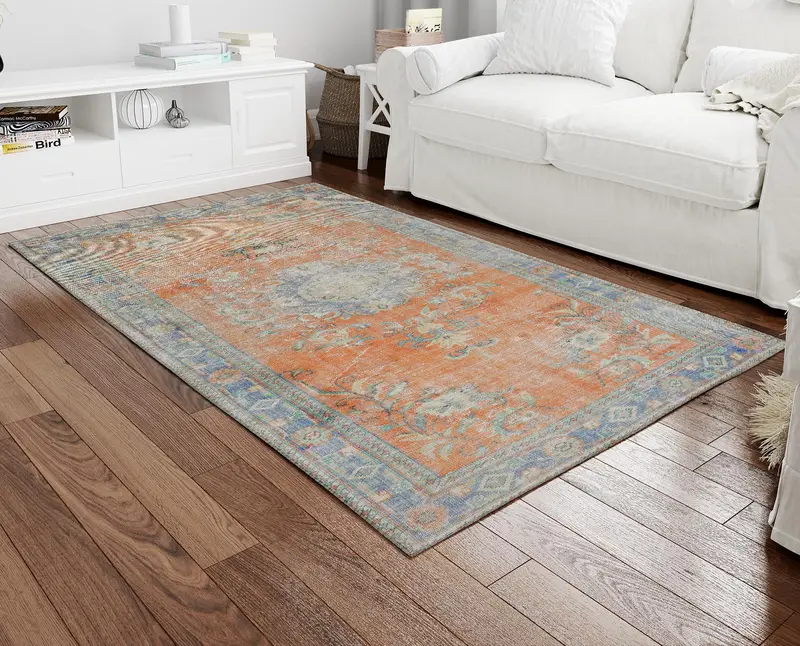 オレンジ メダリオン ヴィンテージ花柄プリント ラグ - 絶妙な家の装飾