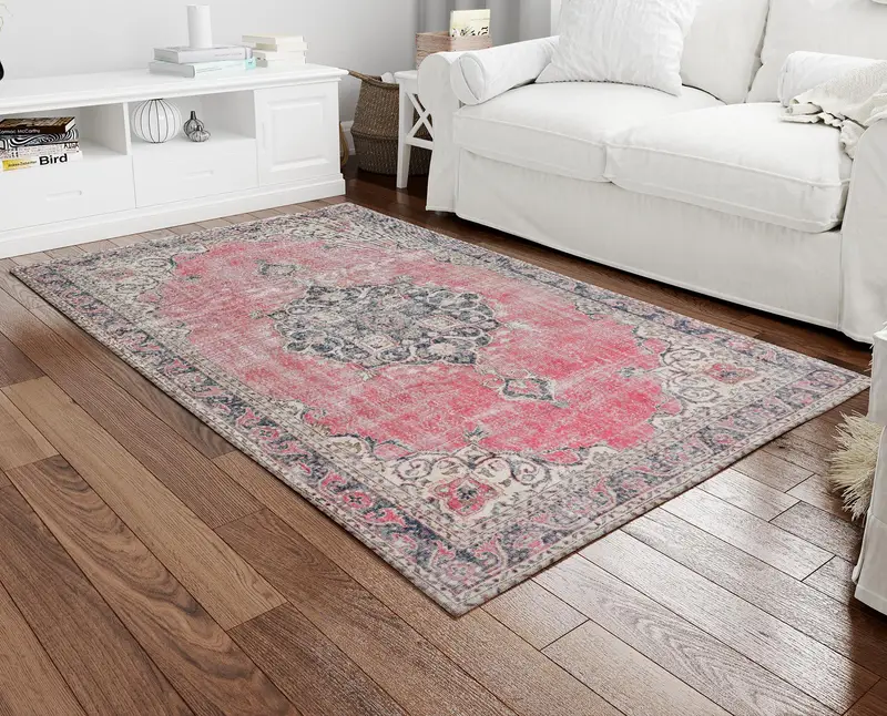 メダリオンプリントラグ、ヴィンテージデザイン、色あせた花柄、アンティークスタイル