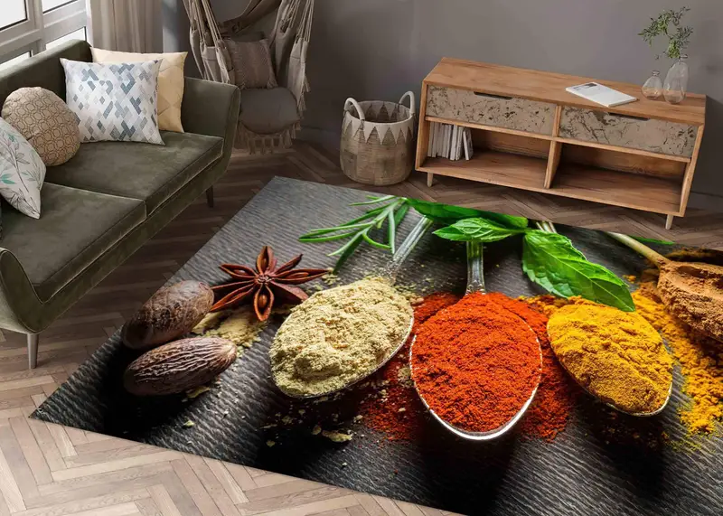 カラフルなスパイス プリント ラグ - モダン、トレンディ、キッチン ダイニング ルーム