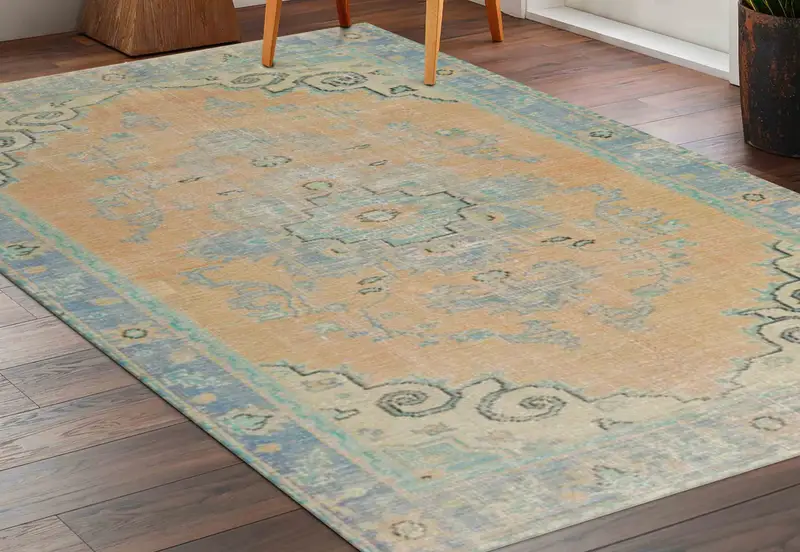 メダリオンヴィンテージプリントラグ、オレンジ&パー...
