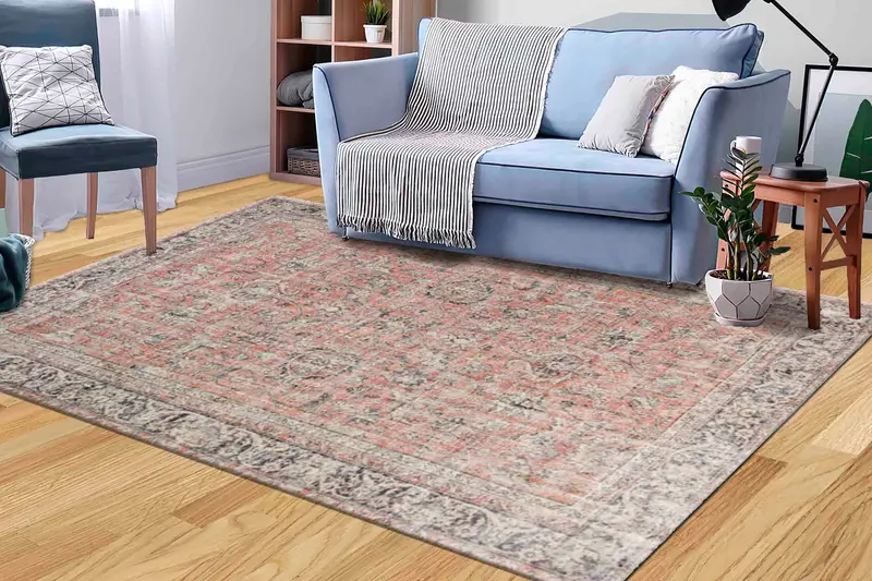 落ち着いたヴィンテージ花柄ラグ、ボヘミアンエスニックパターン