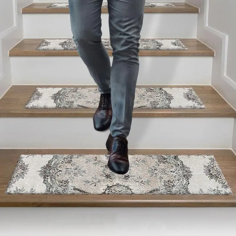 ベージュメダリオンステップラグ、モダンな家庭用のソフトエスニックプリントラグ
