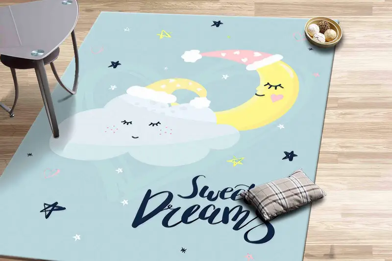 星月夜プリントラグ:子供向けのかわいい月と雲のデザイン