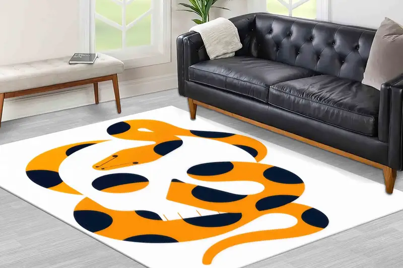 オレンジ スカル スネーク プリント ラグ: 男の洞窟のためのモダンなロフト装飾