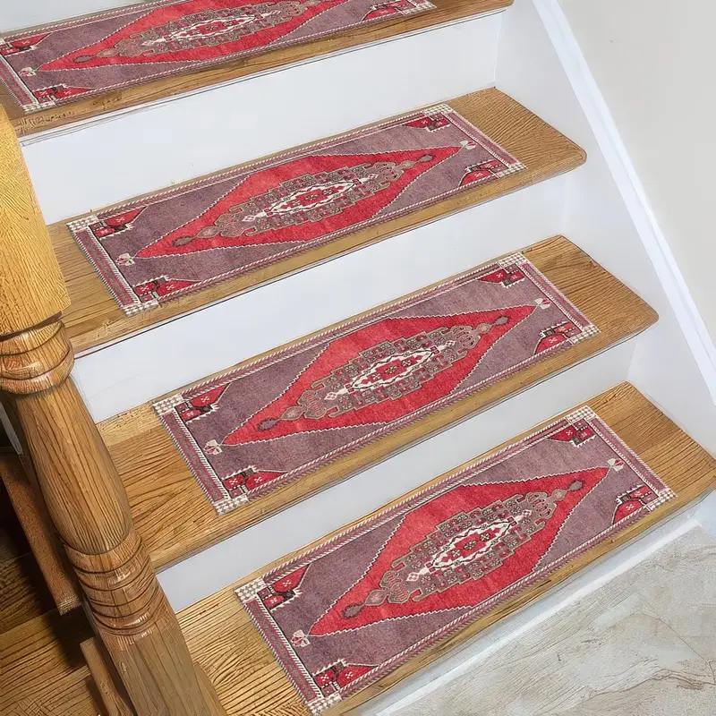 Oushak メダリオンステップラグ、色あせた落ち着いたトーン、トレンディなプリントデザイン