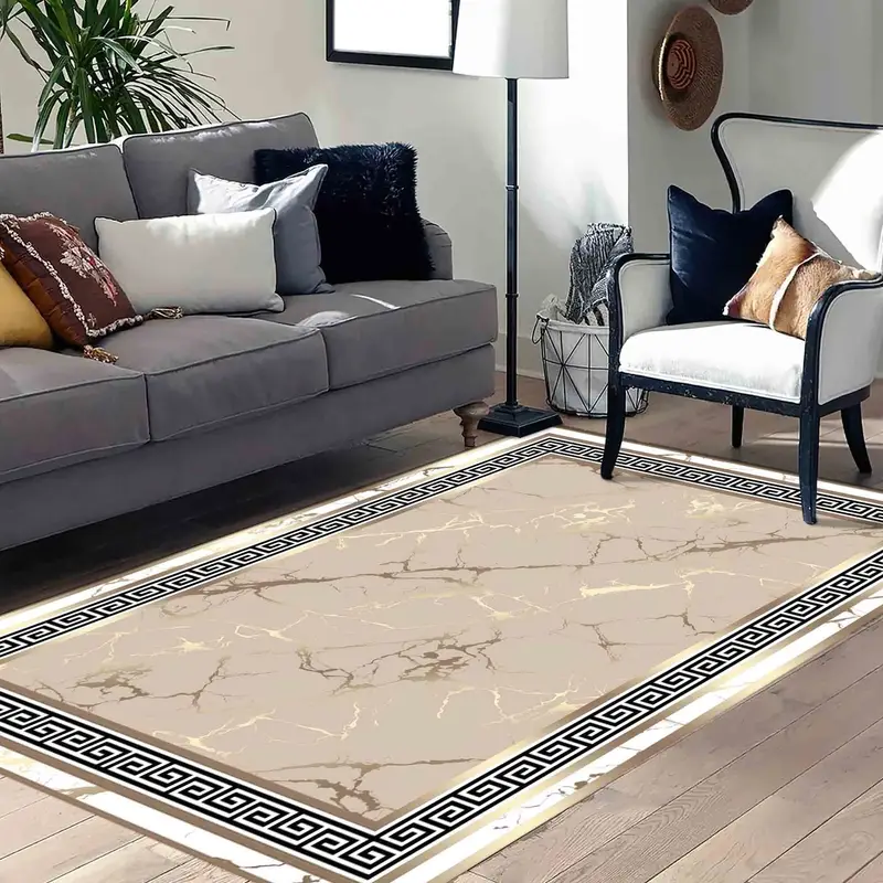 抽象的な大理石プリントのラグ: モダン、ゴールド、トレンディなデザイン
